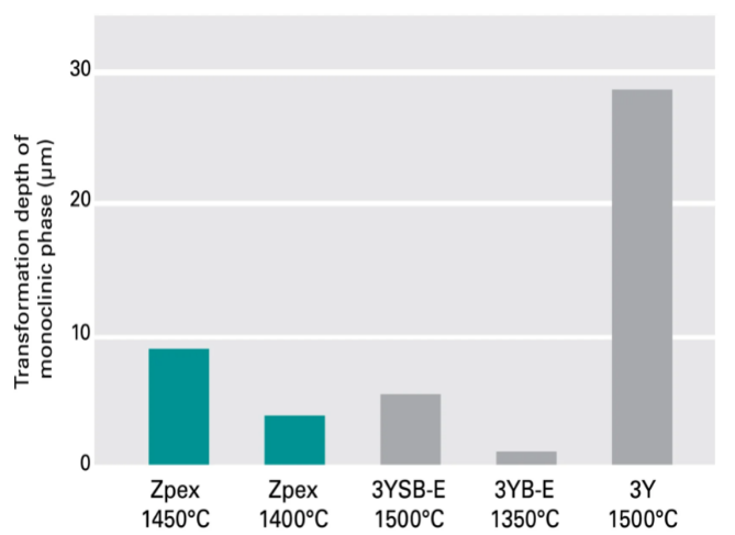 A等級含有3 mol% 氧化釔和 20 wt% 氧化鋁,該產(chǎn)品經(jīng)過熱等靜壓后具有極高的機(jī)械強(qiáng)度,非常適合生產(chǎn)高強(qiáng)度、高耐水性用途的工業(yè)用零部件。 |